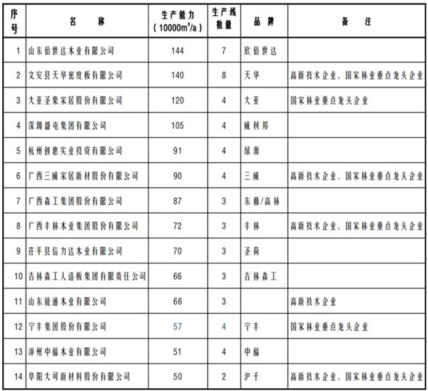 生产能力50万立方米/年以上纤维板类产品生产企业及企业集团
