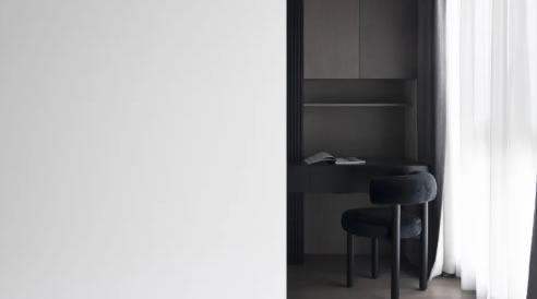 以不同深浅的灰,构成层次分明的空间语言,营造属于卧室的温馨情境。