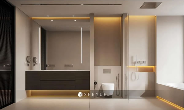 奢悦采用隐藏式灯光安装,让光源消失,达到见光不见灯的效果。