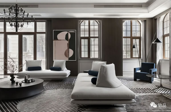 客厅用了两边都能做人的沙发把客厅分成了两块区域